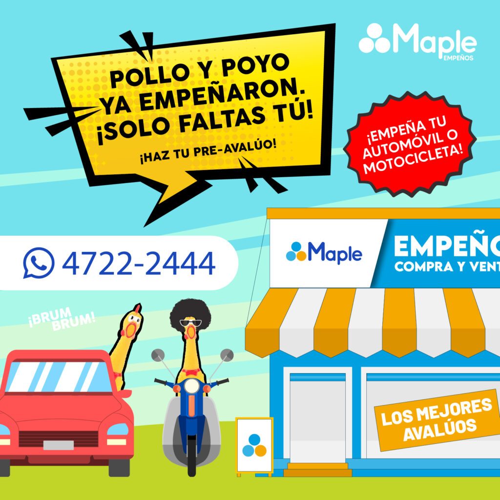 Si tienes una moto o carro en buen estado y necesitas dinero rápido, no dudes en visitarnos tu agencia Maple Empeños más cercana.