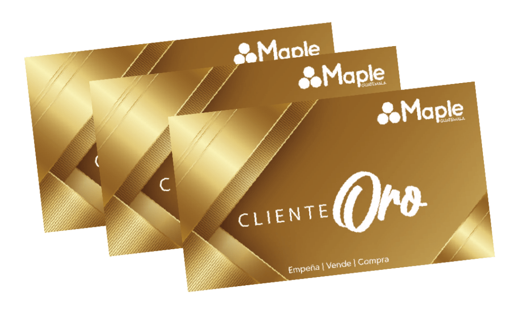 Al momento de realizar cualquier empeño arriba de Q1,000.00, puedes solicitar tu Tarjeta Cliente Oro. Está te dará beneficios únicos cada vez que llegues a empeñar a Maple Empeños.